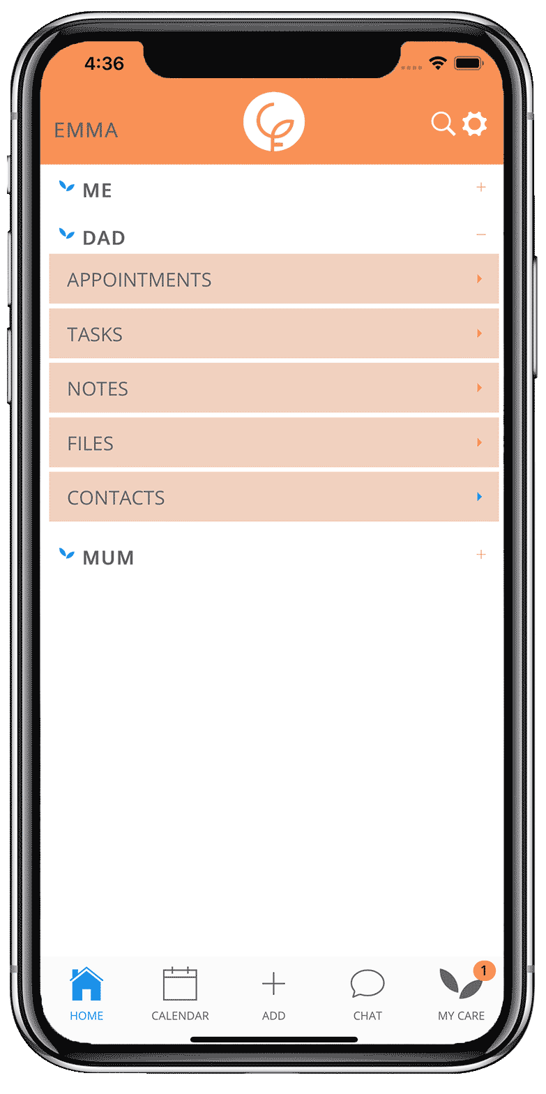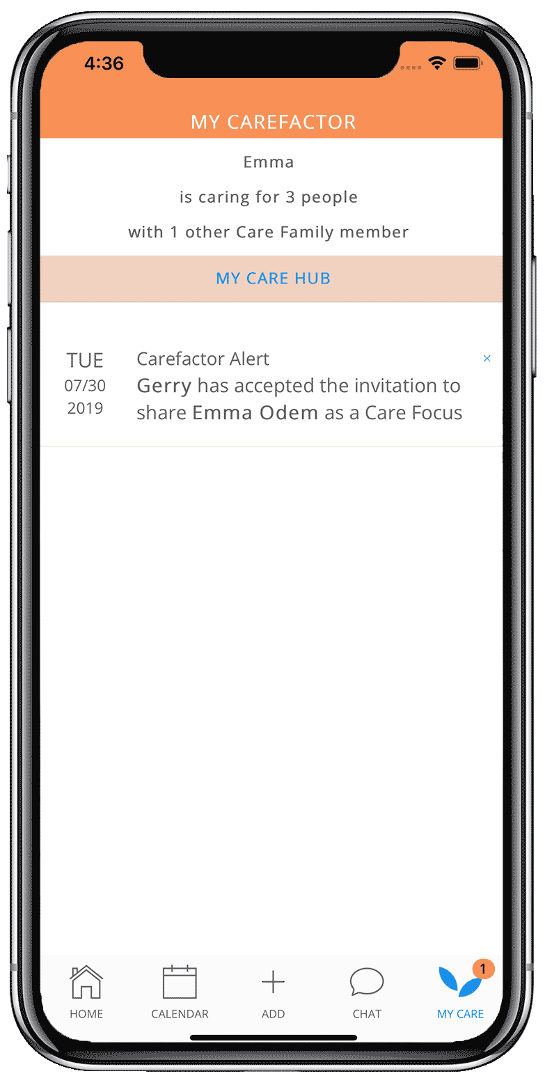 Remain in the care loop with information updates from Carefactor and your Care Family in My Care feed and Chat.